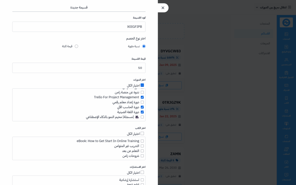 - كوبونات خصم ومرونة تحديد السعر قبل وبعد التخفيض
